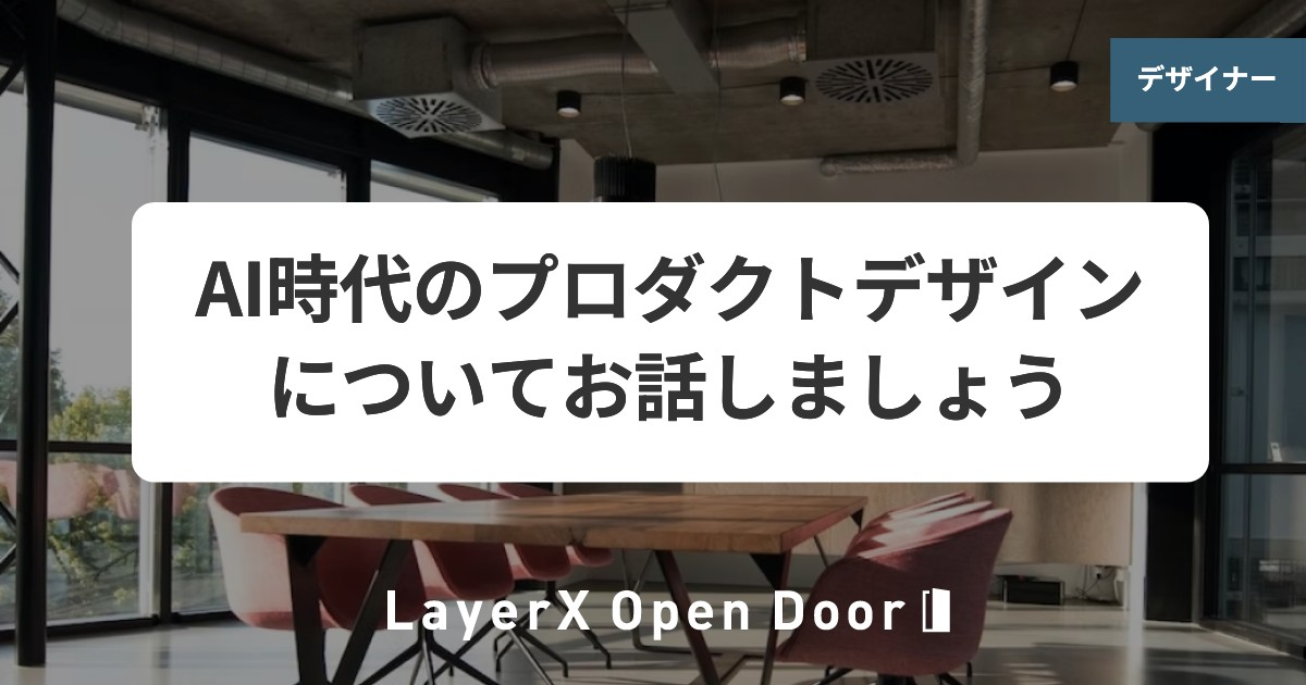<iframe data-tally-src="https://tally.so/embed/3qL57O?alignLeft=1&hideTitle=1&transparentBackground=1&dynamicHeight=1&title=AI時代のプロダクトデザインについてお話しましょう&member=ryotaro.takahashi.001" loading="lazy" width="100%" height="770" frameborder="0" marginheight="0" marginwidth="0" title="LayerX OpenDoor 応募フォーム"></iframe><script>var d=document,w="https://tally.so/widgets/embed.js",v=function(){"undefined"!=typeof Tally?Tally.loadEmbeds():d.querySelectorAll("iframe[data-tally-src]:not([src])").forEach((function(e){e.src=e.dataset.tallySrc}))};if("undefined"!=typeof Tally)v();else if(d.querySelector('script[src="'+w+'"]')==null){var s=d.createElement("script");s.src=w,s.onload=v,s.onerror=v,d.body.appendChild(s);}</script>